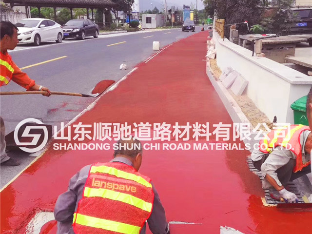 防滑耐磨 彩色路面等產品硬度高、韌性強度達到同行1.5倍以上;耐磨損,經久耐用的優點。